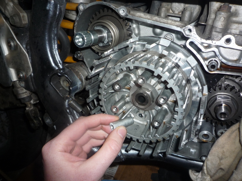 In hindsight it was a school boy error but we attempted to use the lugs on the clutch basket on Pete’s bike to keep it positioned whilst we tightened the main clutch bolt…