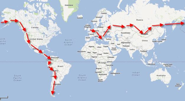 Heading East, the first part of the journey will take us through Europe, Russia, and Mongolia, following a similar route to that taken by Ewan McGregor and Charley Boorman in the Long Way Round. From Ulaanbaatar we will then head North back into Russia and ride the Western half of the infamous BAM road. From Vladivostok we plan to cross into South Korea, where we will ship the bikes to the USA and begin the second part of our journey from Alaska to Argentina. The final destination being Ushuaia, commonly regarded as the southernmost city in the world.